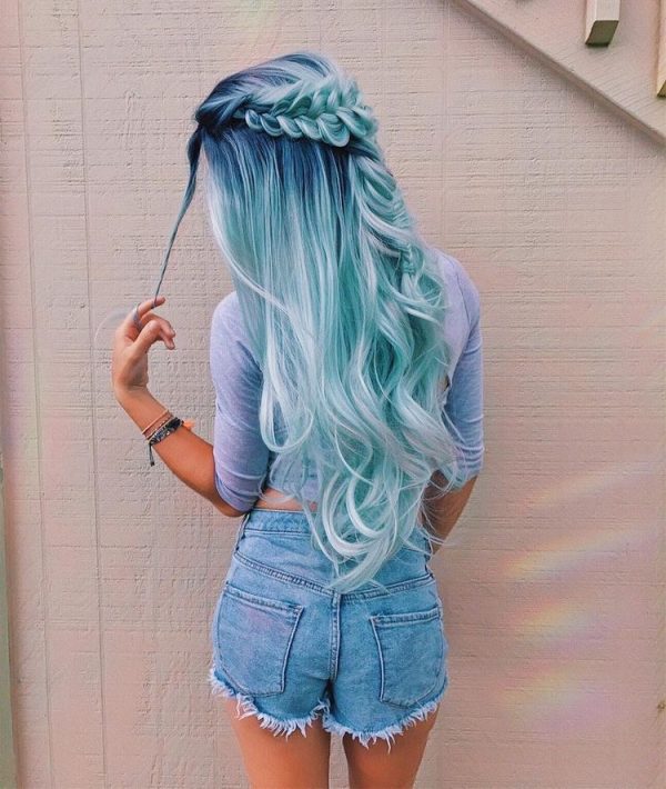 A32 pastel blue lasni podaljški za kitke