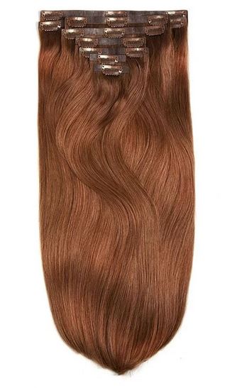 Brezšivni clip on 100% remy lasni podaljški na 8 zaves – ravni, temno kostanjevo rdeči #33