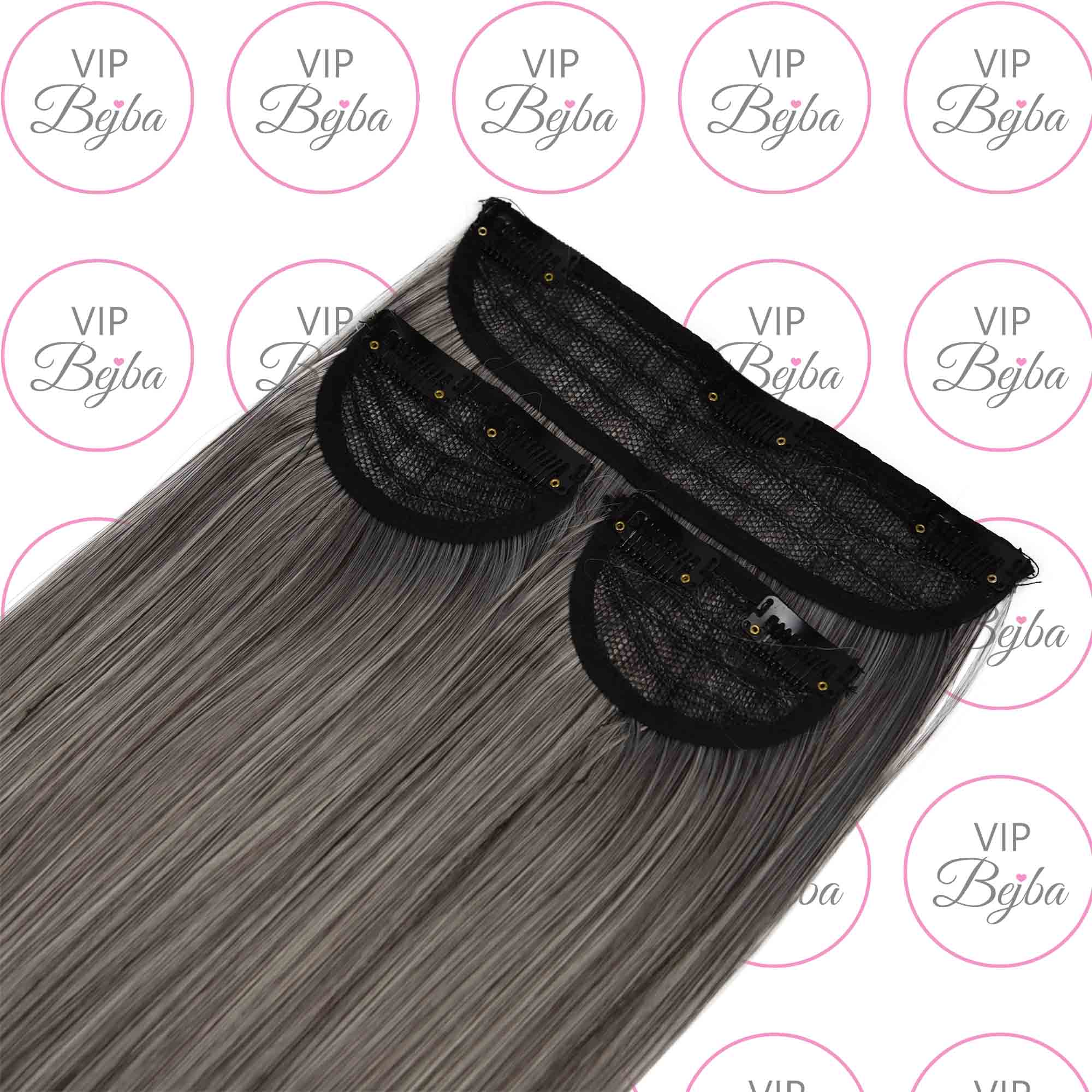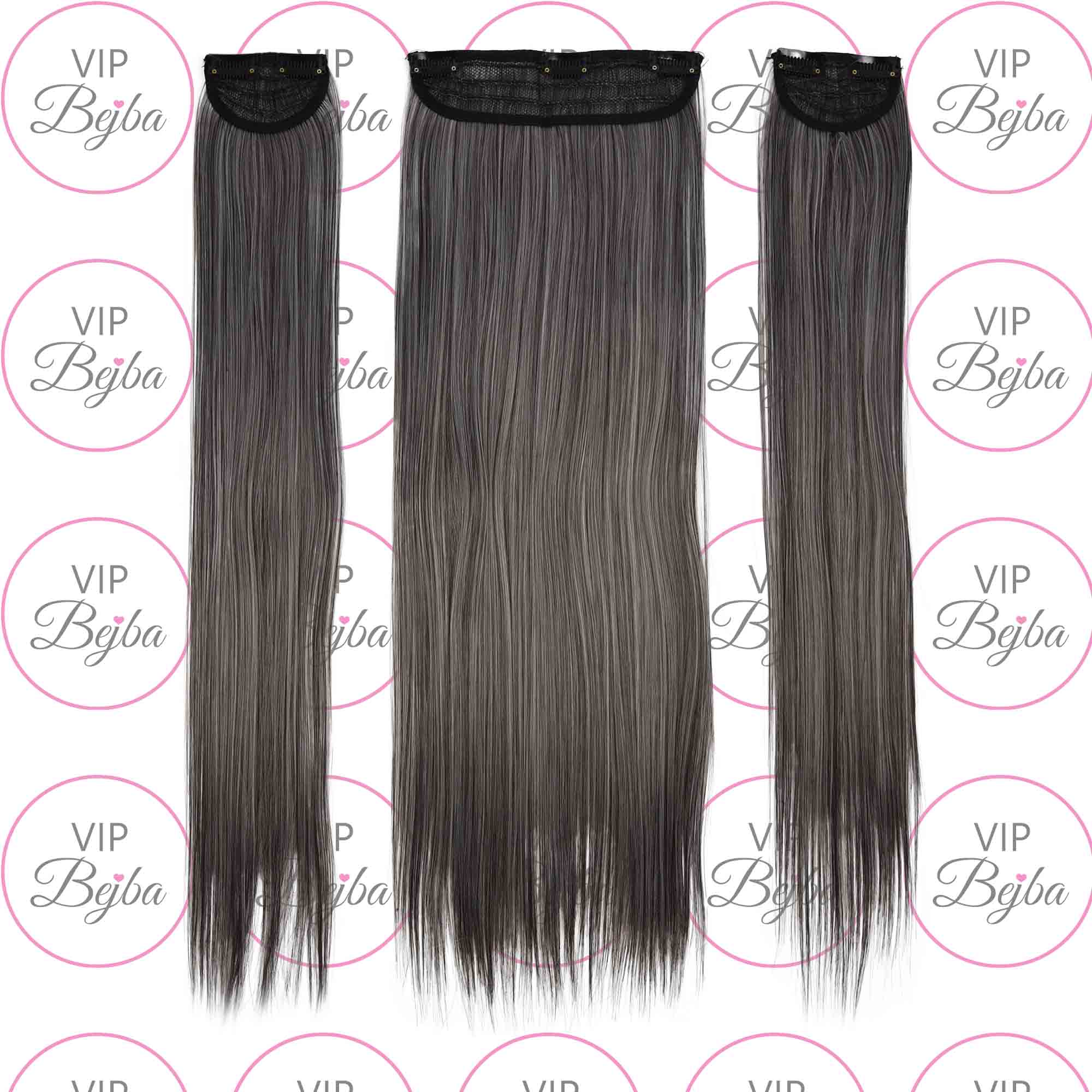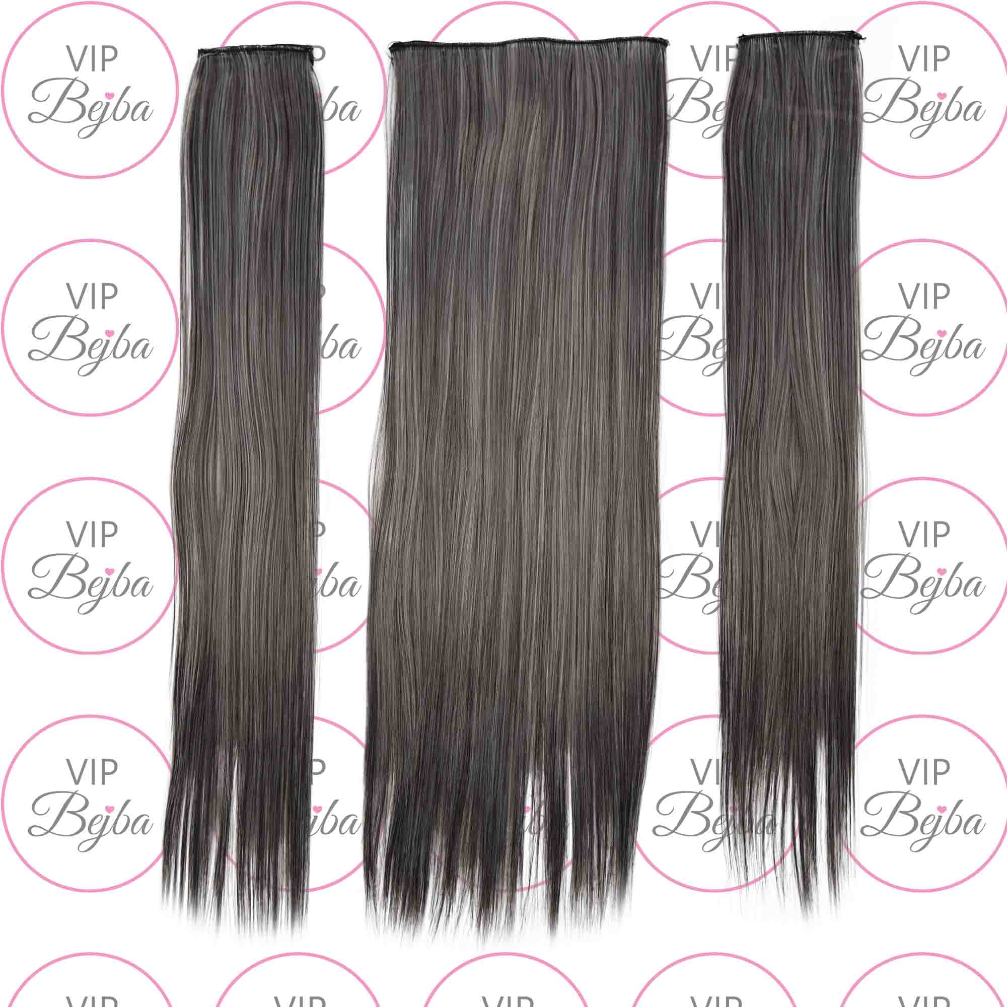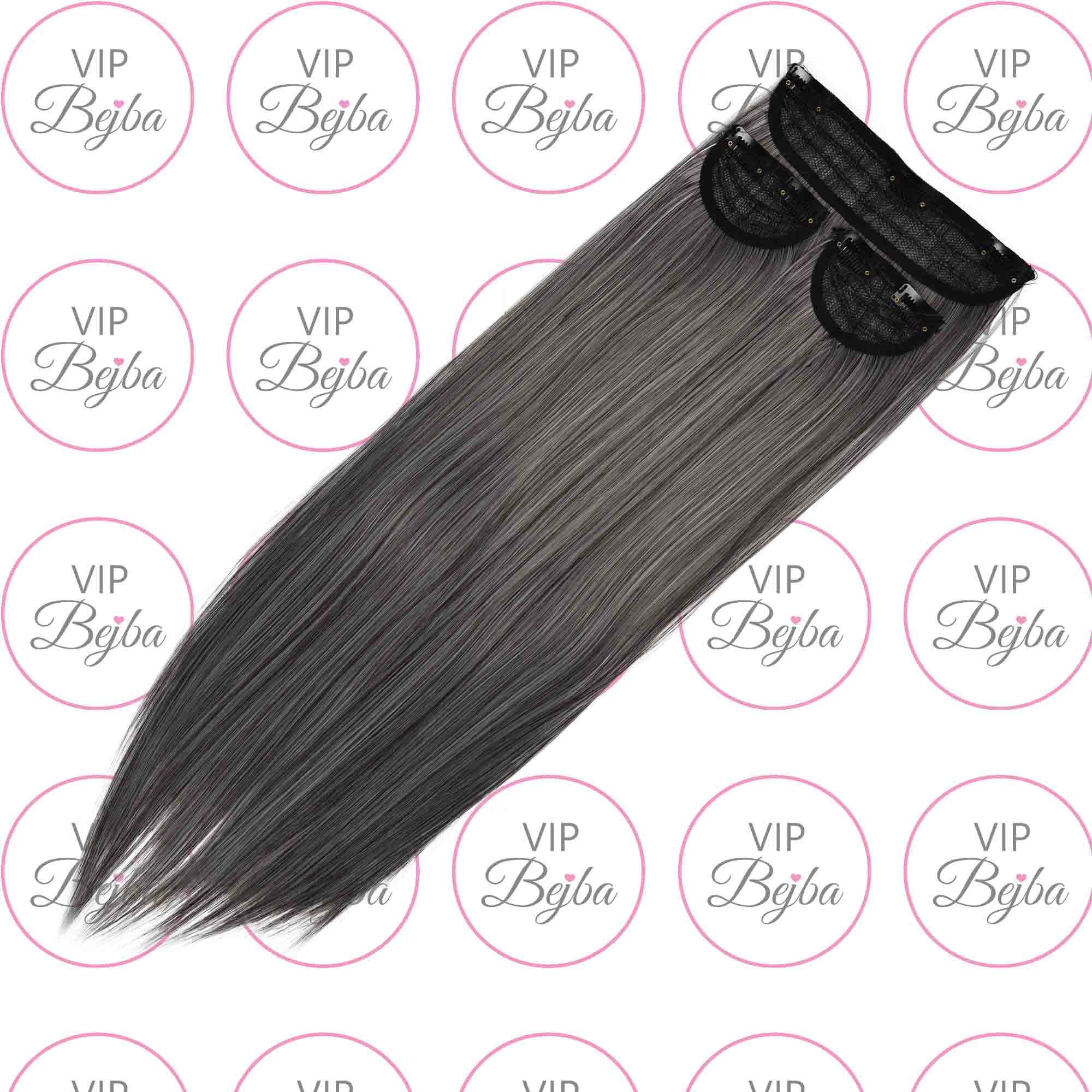 Clip-on lasni podaljški na 3 zavese – ravni, pramenasto sivi F40, 60 cm