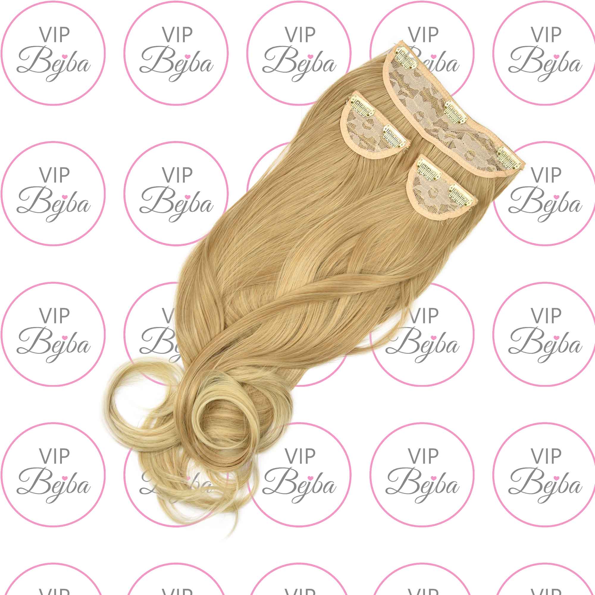 Clip-on lasni podaljški na 3 zavese – skodrani, svetlo pramenasto blond F15, 50 cm