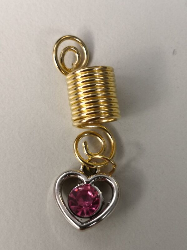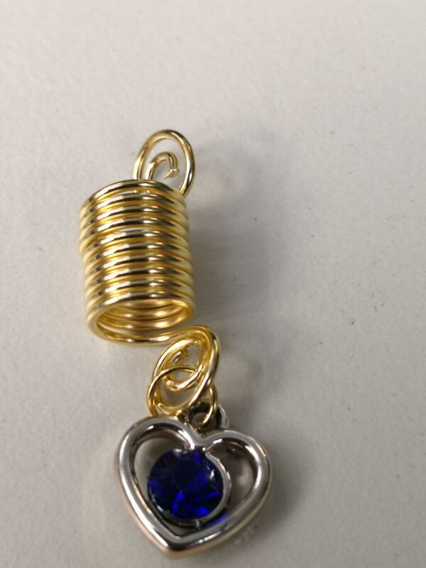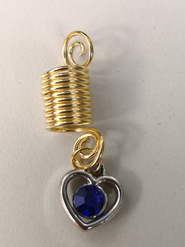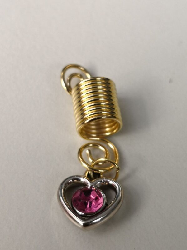 Pred tabo je nakit v katerem zablestiš…twister v zlati barvi z obeskom srca in z roza ali modrim kristalom v njem. Nakit je iz kovine. Twister omogoča prilagajanje na velikost kitke (lahko ga raztegneš po obsegu ali dolžini ali pa zmanjšaš po obsegu ali dolžini glede na prvotno obliko ob prejemu). Nakit je zelo lahek, tako da ne predstavlja dodatne teže na glavi.