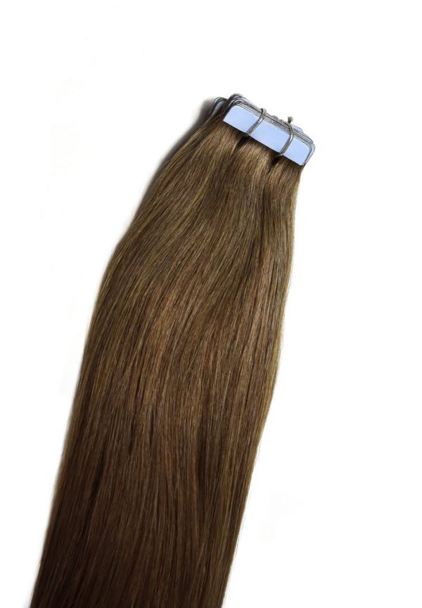 100g TAPE-IN 100% remy lasni podaljški – ravni, srednje pepelnato rjavi #8